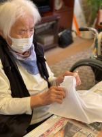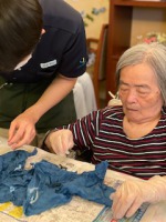 入居者様が、リハビリ担当と一緒に頭の体操に取り組まれていました。