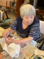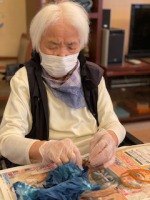 加工に使った輪ゴムや割り箸、糸を外して広げていきます。