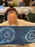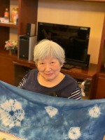 最初は緑や黄色がかった手ぬぐいが、空気に触れると見る見るうちに藍色に変化します!
