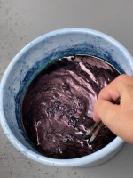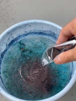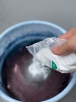 準備は非常に簡単で、5Lの水に藍を溶かし、その後藍の溶解剤を投入して混ぜるだけです。