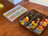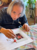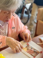 ご自身の写真と、飾りを交互に見ながら、創作のスタートです。