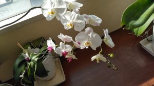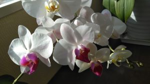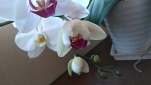 今朝、胡蝶蘭の蕾が開きそうになっているなぁと思っていたら
