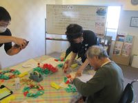 グリーンライフ大学の工作ではクリスマスリーフを作り