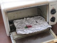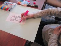 まずは絵を描いて、色をぬり、そしてオーブンで1分