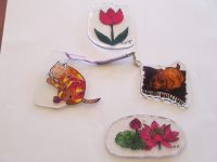 道上先生の指導のもと、プラ板でキーホルダーを作りました。