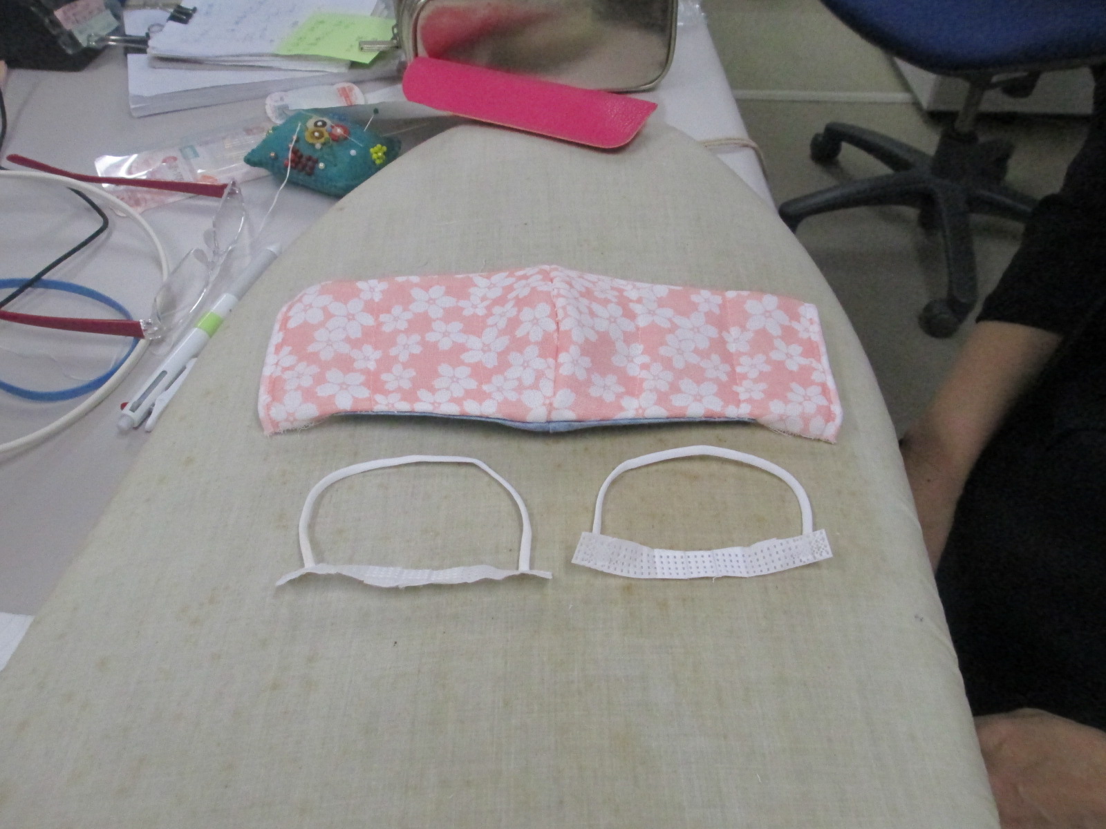 昨日のマスクのゴムはストッキングを使い利用しました。