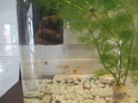 小さくてよく見えないので、数匹だけ透明の水槽に引っ越しをしました。