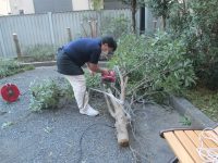 今日は、裏の駐車場に生い茂った木を施設長と相談員で伐採しました。