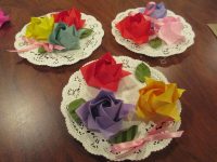 そして 先生のご指導の下 四角に折ったり斜めに折ったり…と 数回折るだけで あっと言う間に ワンワン!!