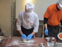 目の前でピザ生地を広げて具をのせて厨房で焼き立てのピザを召し上がっていただきました( *´艸`)