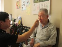経口摂取が困難の方でしたが「水が飲みたいなぁ」とリハビリ中に仰る事が多くなり、施設ケアマネ・看護師・理学療法士・ご家族と協力し、訪問歯科により嚥下評価を行い嚥下摂取可能と許可を頂き、少量のお水にトロミを付けて理学療法士により、お水を飲んで頂きました!