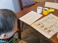 入居者様も最初は紙を見ながらゆっくりですが、月末には何も見ずにスラスラと大きな声を出しています!(^^)!