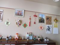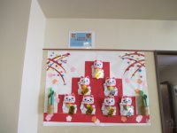 リハビリ室の前には指先のリハビリで作成した招き猫もお出迎えしています!!