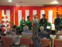 昨日の敬老会での一場面・・・ボランティアの民謡の方々にお越しいただいて三味線の伴奏でお祝いの唄を歌って頂きました。
