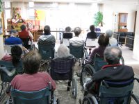 隔週の水曜日は先生を招いての有料レク「音楽療法」を行っています。