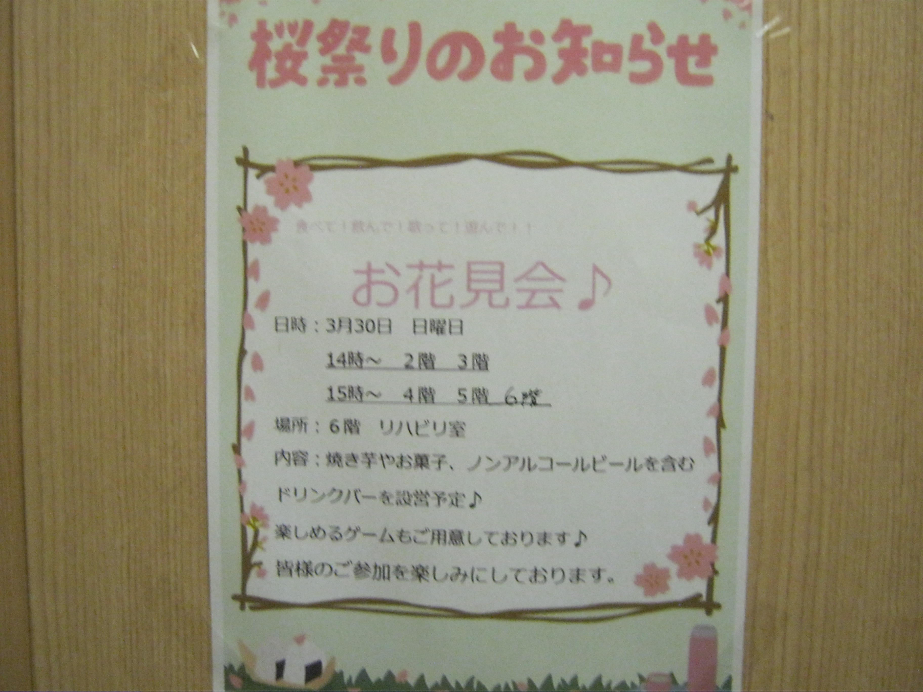 ご入居者様とスタッフが一緒に作った桜がきれいでしたね。