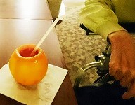 お風呂横のラウンジでカクテルジュースをお出ししました。