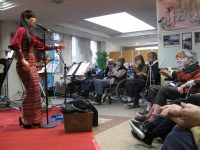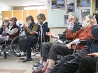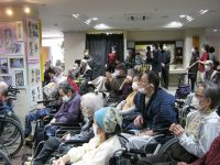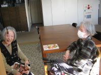 もう一枚は図書室で談笑していた入居者様です。声かけしたところ、カメラ目線になってしまいましたが、ニコニコと日向ぼっこをしていました。