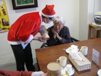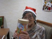 最後の12月は宮島施設長がサンタに扮し、ひとりひとりの入居者様にプレゼントを渡して回りました。