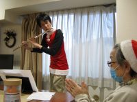 クリスマスメロディーに乗せて、サンタとトナカイがご入居者の皆様へ、プレゼントを配りに参りました。