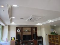1日目は1階の玄関、廊下、ラウンジ、カラオケスペース、トイレの照明を交換しました。