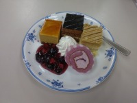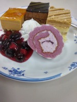 4種のケーキとベリーソースが添えてある生クリーム付き