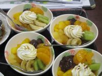 今月のスペシャルおやつは「紅茶ムースのフルーツぜんざい」でした。