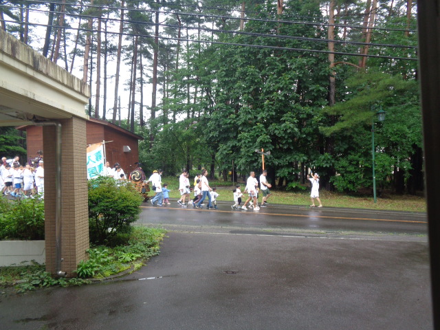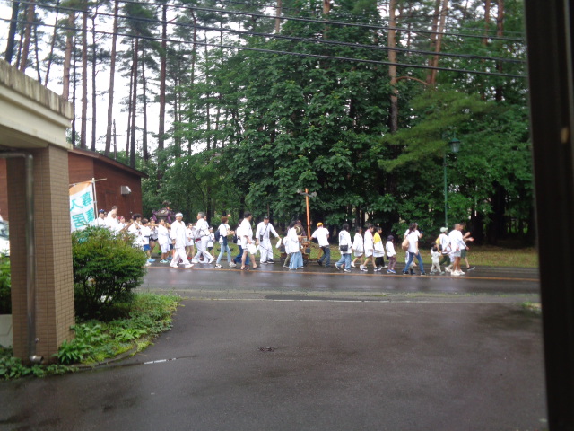 小雨の中施設前を通りかかったお神輿