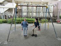 近くの公園でブランコに乗ってみました。