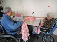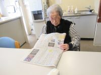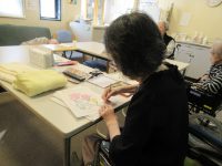 ぬり絵を描いたり、新聞を読んだり、お話をしながら食事用のエプロンを畳んだりして過ごされています。