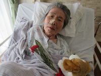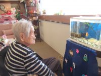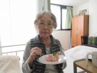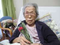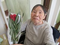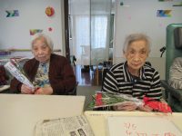 女性の入居者様に、赤いカーネーションをプレゼントさせていただきました。