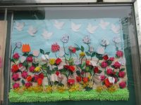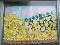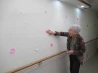 せめて施設でもサクラを楽しめたら!と思い、折り紙で作ったサクラ🌸を飾ってみました☆