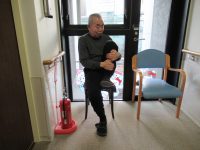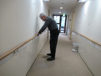 施設内を歩いたり、手すりを使ってストレッチをしたり、椅子に座ってオリジナル体操をしていらっしゃいます。