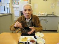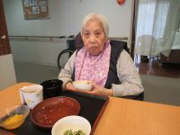 今日のメニューは、お赤飯・味噌汁・メバルの煮つけ・オクラのおかか和え・フルーツでした。