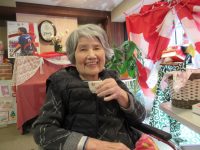 恒例の「甘酒」を楽しみにされていて、「美味しい。」と喜んで飲んでいらっしゃいました。