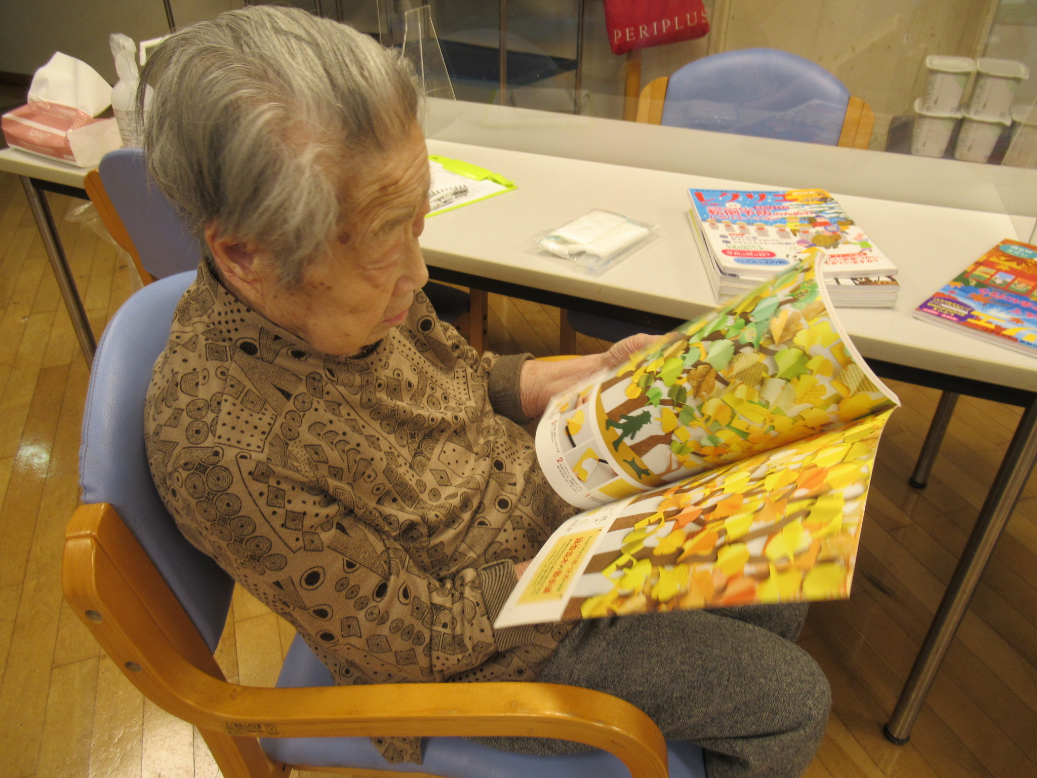 3階のお部屋からご自分のペースでB1までいらっしゃって、待っている間は読書をしていらっしゃいました。