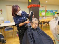 入居されたときはロングヘアーでしたが、今はショートを希望されていて、スッキリカットしてもらい満足されてました。