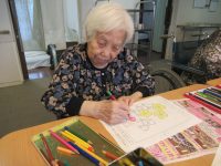 今日の皆様は、女性はエントランスでぬり絵をしたり、おしゃべりを楽しんだり、お部屋で数独を頑張っていらっしゃいました。