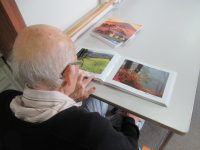 男性の皆様は、趣味の写真集や本を貸しあったり、お話を楽しんでいらっしゃいました。