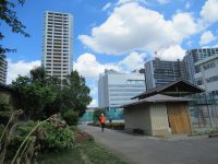 花壇の花や銅像、日時計、学校から見える駅前のマンションなどです。