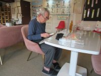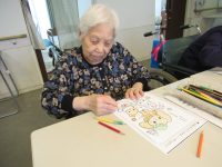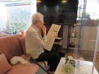 入居者様は、室内で新聞を読んだり、ぬり絵をしたりして過ごされていらっしゃいました。