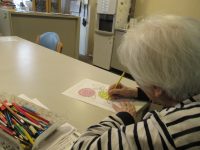 入居者様が、7月のカレンダーや夏の風景や花のぬり絵をしました。