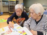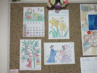 入居者様が一生懸命色塗りをした、ぬり絵を飾りました。