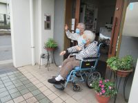 小雨が降る中、小学生が安全に帰宅できるように、入居者様が見守りをしました。