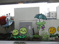 少しでも気分を明るくなるように、紫陽花や可愛らしいぬり絵を飾りました。