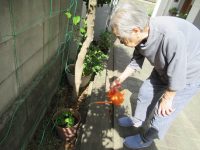 種を蒔いてくれたkさんと水やりをしました。