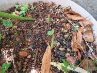 昨年育てた朝顔の種が自然に芽をだしました。