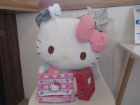 「なでると御利益があるらし」といわれている、メディス武蔵浦和の守り神の「やすこちゃん」を始め、一階ロビーのキティちゃんたちが、入居者様が作ってくれた兜をかぶっています。