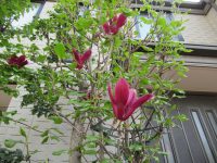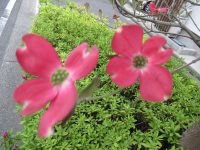 桜は葉が出始め、ハナミズキの花が咲き始めました。