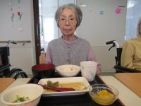 今月は、お赤飯・味噌汁・メバルの煮つけ・ドレッシング和え・フルーツでした。